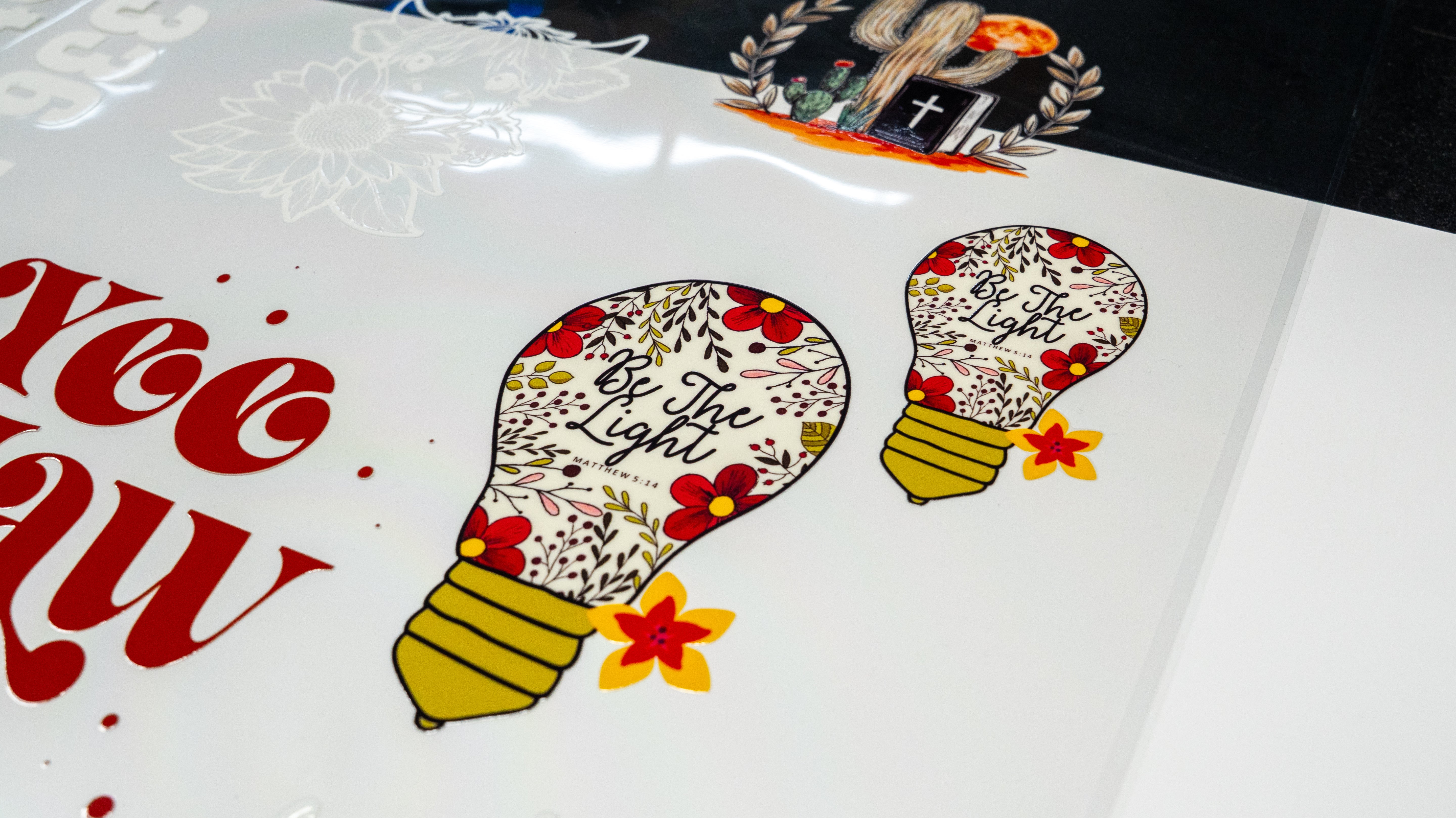 - Easy Application: UVDTF transfers are simple to use and apply, making them perfect for small businesses, large-scale production, or custom projects.